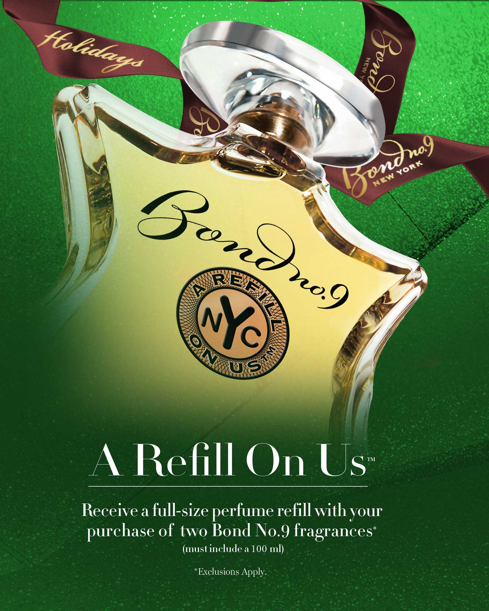 Receive a full-size perfume refill with your purchase of two Bond No. 9 fragrances (must include a 100ml)